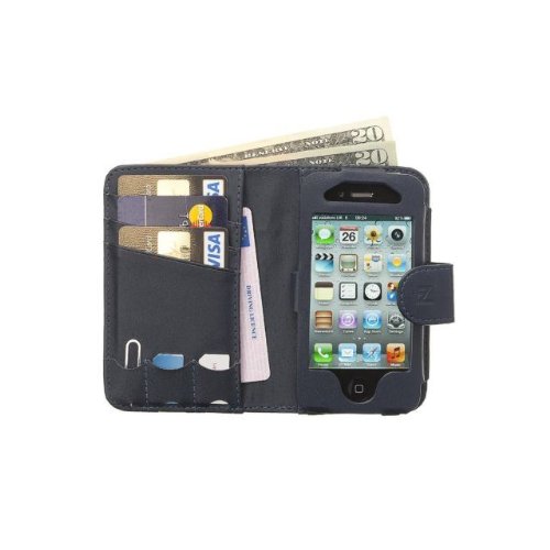 Fonerize Classique Cuir Haute Qualité Portefeuille étui pour Homme avec porte cartes pour iPhone 4 4S en Bleu