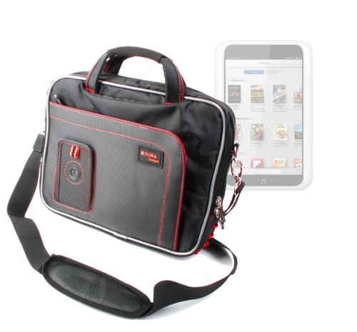 pour DURAGADGET Sacoche sac de transport avec bandoulière et poignée rembourrée noir/rouge pour tablette tactile Nook HD+ 9", Lenovo IdeaPad K1, ThinkPad et
